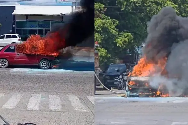 Un vehículo que presuntamente sufrió un desperfecto mecánico, al parecer un cortocircuito mientras se desplazaba sobre transitada calle de la ciudad, terminó en llamas junto a una gasolinera de la ciudad de Los Mochis.