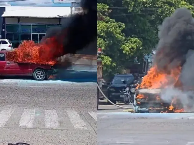 De inmediato un par de segundos después, el vehículo estaba envuelto en llamas, pues rápidamente el fuego envolvió el Tsuru, y apenas le dio tiempo al conductor de ponerse a salvo, la unidad quedó prácticamente el medio de la calle.