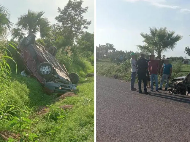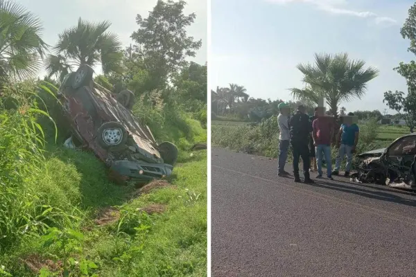 En encontronazo termina en volcadura en la carretera a La Trinidad, Guasave; hay dos lesionados