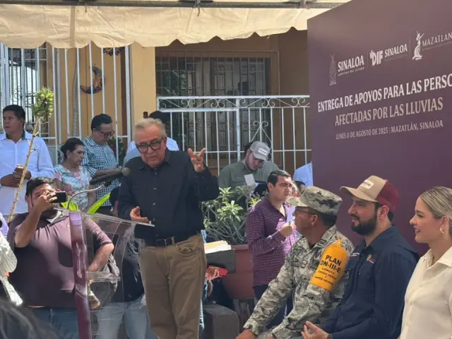 La tarde de este lunes, el gobernador del estado, Rubén Rocha Moya, acompañado de la presidenta municipal de Mazatlán, Estrella Palacios Domínguez, encabezó la entrega de apoyos a las familias que resultaron afectadas por las intensas lluvias que azotaron el puerto el pasado jueves.