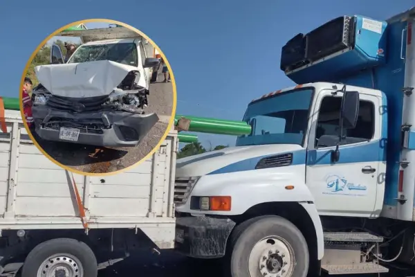 El accidente fue protagonizado por una camioneta Nissan de color blanco, propiedad de una empresa constructora, un tractocamión con plataforma de color blanco y un tractocamión con caja refrigerada de color blanco con azul.
