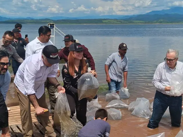 El Gobernador de Sinaloa, Rubén Rocha Moya y el Presidente Municipal de Culiacán, Juan de Dios Gámez Mendivil llevaron alevines a la presa Sanalona para su reproducción, en beneficio de los pescadores del sector.