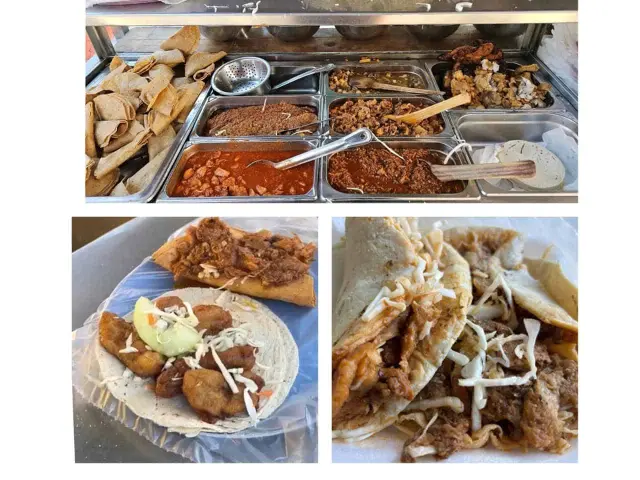 El menú ofrece tacos dorados y tacos suaves de guisos, entre ellos: