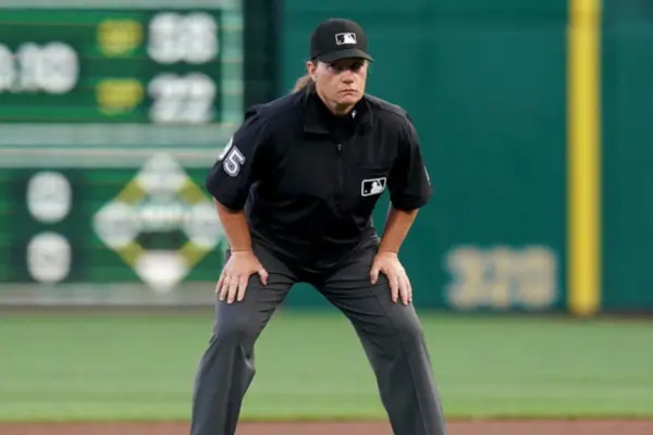 Es una umpire estadounidense de beisbol que está haciendo historia como la primera mujer en la era moderna en arbitrar un juego oficial de las Grandes Ligas de Béisbol (MLB).