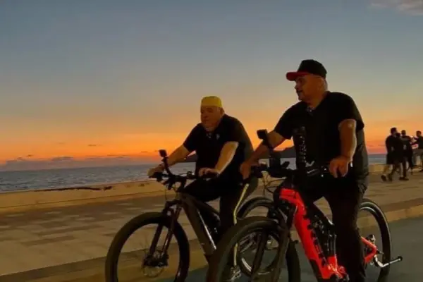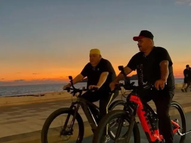 El Coyote y Chuy Lizárraga se ejercitan en bicicleta en el Malecón de Mazatlán