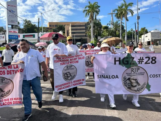 Trabajadores del IMSS en Culiacán marchan para exigir regreso de antiguo régimen de jubilaciones y pensiones