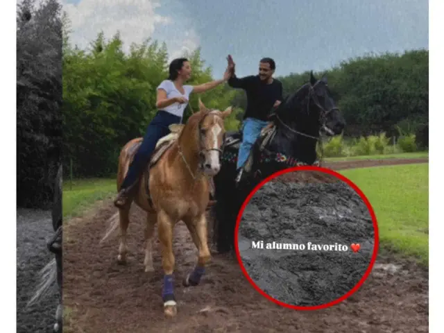 En las imágenes, Ángela Aguilar aparece enseñando a Nodal algunas técnicas de equitación. Él compartió una fotografía con la frase: "mi maestra favorita", mientras que ella subió una postal en la que ambos aparecen montados, acompañada del texto: "mi alumno favorito".
