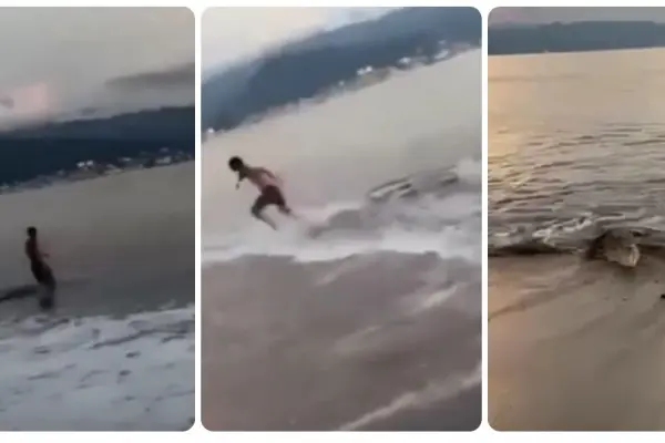 El video, de poco más de un minuto de duración, rápidamente se volvió viral en redes sociales, y muestra al joven disfrutando del mar en la playa Bocanegra, sin percatarse de que un cocodrilo se le aproxima a gran velocidad.