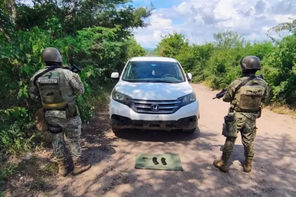 Luego de efectuar reconocimientos terrestres en inmediaciones del poblado ejido Los Algodones, en Culiacán, los militares localizaron una unidad de la marca Honda sin placas de circulación; al verificar su estatus confirmaron que cuenta con reporte de robo, además, en su interior encontraron dos cargadores para arma larga y cartuchos útiles.