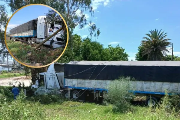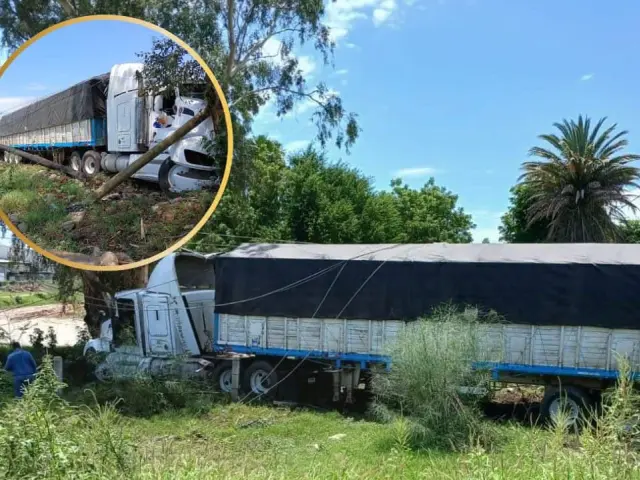 Posteriormente, la unidad de carga avanzó varios metros entre la maleza y derribó dos postes de madera de la Comisión Federal de Electricidad (CFE). Finalmente, se impactó contra un enorme árbol con el que logró contener la velocidad y la marcha.