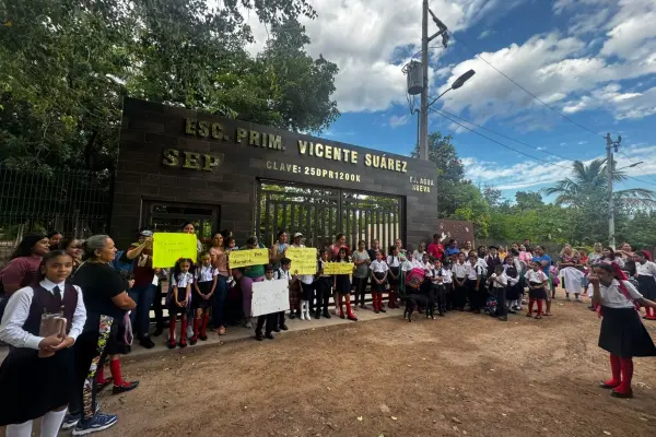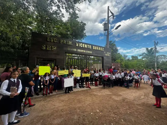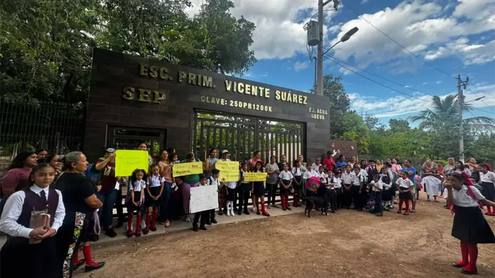 El ciclo escolar comenzó con protesta en la Escuela primaria Vicente Suárez del ejido Agua Nueva, Ahome, con Calve : 25DPRI200k, donde padres de familia decidieron tomar las instalaciones en rechazo a la falta de maestros. Señalan que la Secretaría de Educación Pública pretende que más de 70 niños sean atendidos solo por dos docentes, cuando históricamente la escuela ha funcionado con tres.