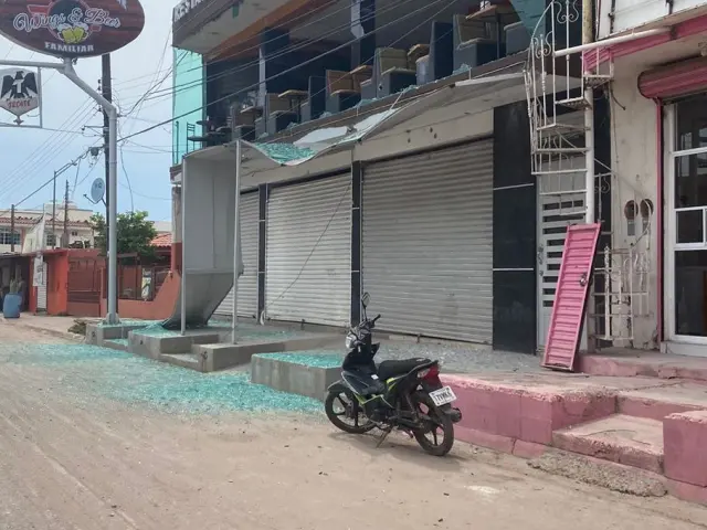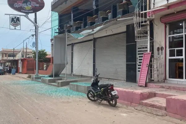 Además que hay un restaurante bar balaceado y una camioneta dañada.