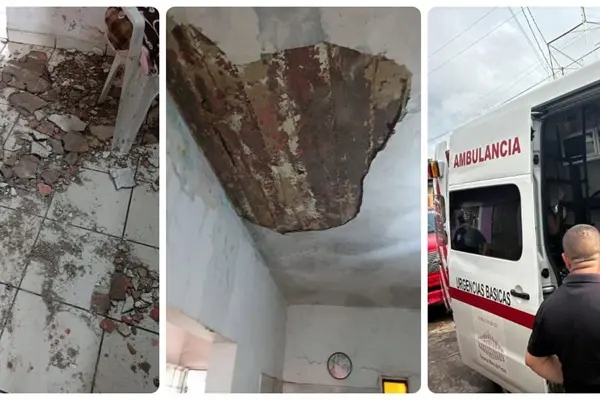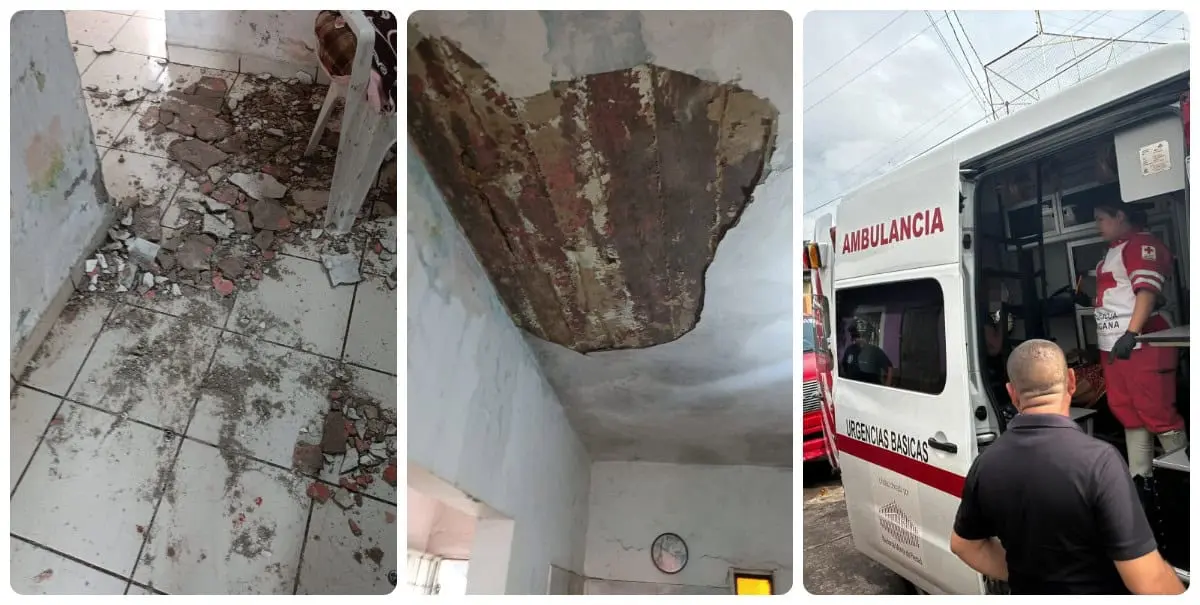El reporte inicial hablaba de que se había desprendido parte del techo y le había caído a una mujer adulta; sin embargo, al llegar confirmaron que solamente se trataba del enjarre. Sin embargo, por lo grueso de la capa de cemento y por tratarse de una mujer de la tercera edad, esta resultó lesionada.