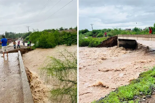 La comunidad afectada se encuentra a unos 10 kilómetros de la carretera México 15, con acceso a través de la calle 10. En las imágenes se observa cómo la fuerza del agua corría con gran intensidad, debilitando la infraestructura, una vez que el puente cedió, generando un cauce más amplio para drenar el acumulado de precipitaciones.