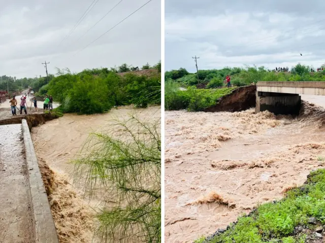En un acto de desesperación, alrededor de 14 ciudadanos tumbaron el puente del Sifón, ubicado detrás del cerro Batequis, con el objetivo de liberar el cauce y permitir que el agua fluyera con mayor rapidez, evitando así inundaciones en la zona rural de Juan José Ríos.