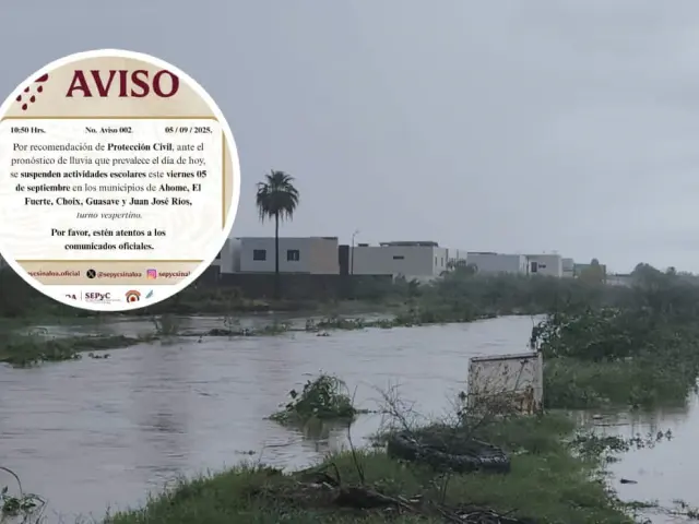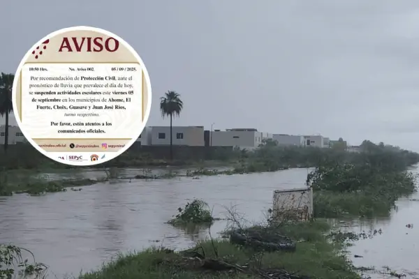 La Secretaría de Educación Pública y Cultura (SEPyC) informó que también quedaron suspendidas las actividades escolares del turno vespertino este viernes, en los municipios de Ahome, El Fuerte, Choix, Guasave y Juan José Ríos, debido al pronóstico de lluvias que persiste en la región.