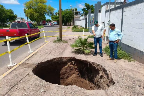 Luego de las fuertes lluvias por los remanentes de la tormenta tropical Lorena, un enorme socavón apareció en el bulevar Centenario, a un costado de las oficinas de Tránsito Municipal, en la ciudad de Los Mochis, el cual encendió las alarmas de las autoridades este lunes, al detectarse riesgo para automovilistas y peatones que circulan por la zona.