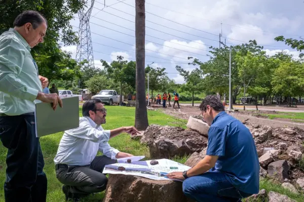 El Presidente Municipal, Juan de Dios Gámez Mendívil supervisó los avances del proyecto “Sendero Seguro“, que se realiza sobre el parque lineal del Boulevard Agricultores.