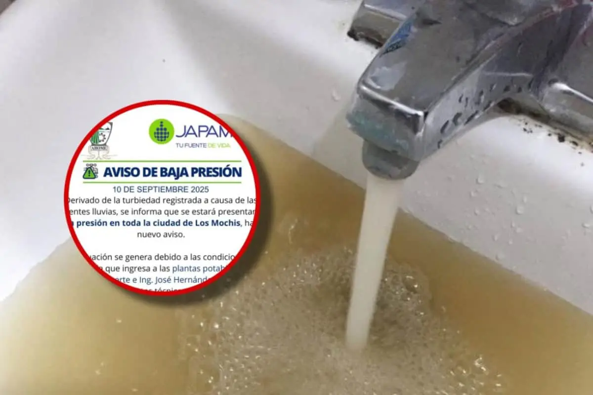 La Junta de Agua Potable y Alcantarillado del Municipio de Ahome (JAPAMA) anunció que, debido a la turbiedad registrada en el agua cruda tras las recientes lluvias por los remanentes de la tormenta tropical Lorena, se estará presentando baja presión en toda la ciudad de Los Mochis hasta nuevo aviso.