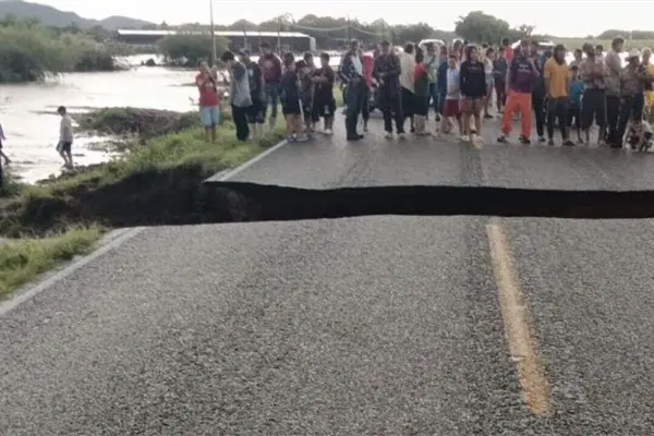 Las intensas lluvias registradas en el municipio de Ahome provocaron el colapso de un tramo carretero en la sindicatura de Higuera de Zaragoza, dejando incomunicadas a comunidades.