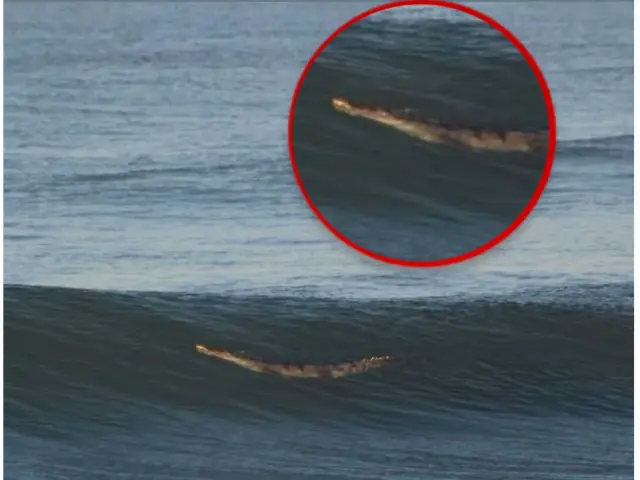 De acuerdo con el reporte, el reptil fue visto entre el oleaje la mañana de este viernes, lo que activó de inmediato un operativo de inspección y búsqueda a cargo de elementos del Escuadrón de Salvamento Acuático.