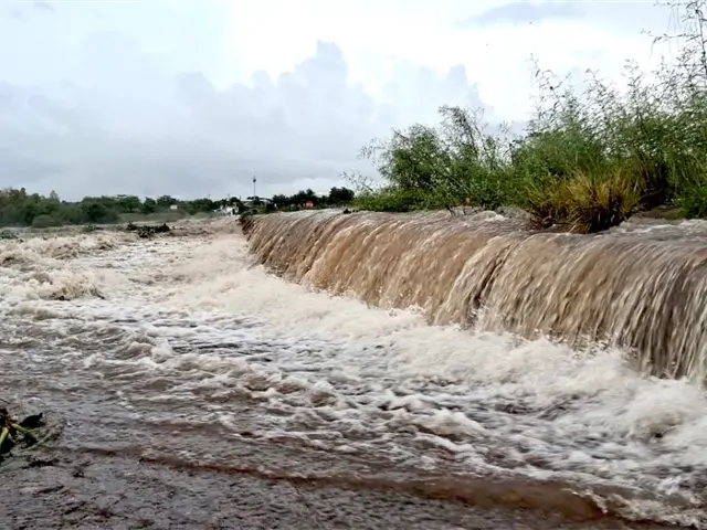 Fuertes lluvias provocan desborde de presa Derivadora en Culiacán