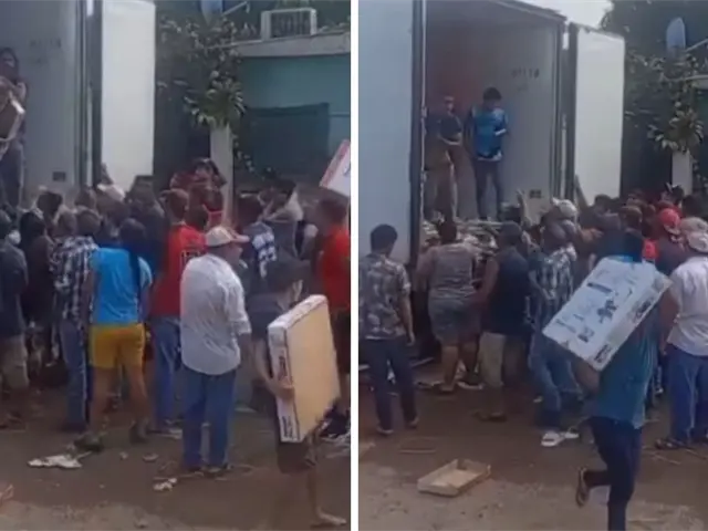Se dice que el chofer intentó impedir que las personas se llevaran los artículos; sin embargo, varios sujetos violentaron la caja, la cual terminó quebrándose, lo que facilitó la extracción de la mercancía.