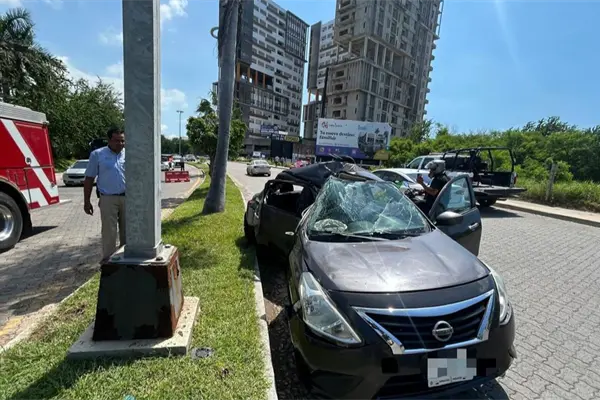 Un fuerte accidente se generó esta mañana de sábado en el Boulevard Marina Mazatlán, luego de que un automóvil terminara impactado contra una luminaria del camellón central.