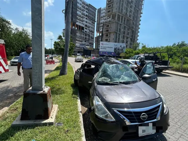 Se trata de un automóvil de la línea Nissan en color gris oscuro, el cual iba conducido por un hombre el cual resultó lesionado tras el fuerte impacto contra la estructura pública.