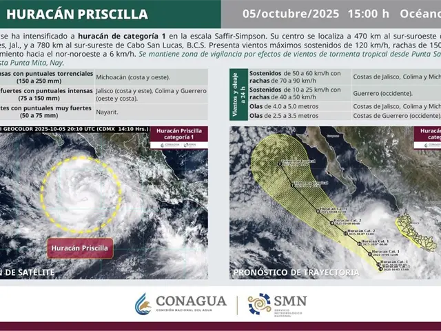 La tarde de este domingo, "Priscila" se intensificó a huracán categoría 1 en la escala Saffir-Simpson, esto de acuerdo con información que brinda del Servicio Meteorológico Nacional (SMN).