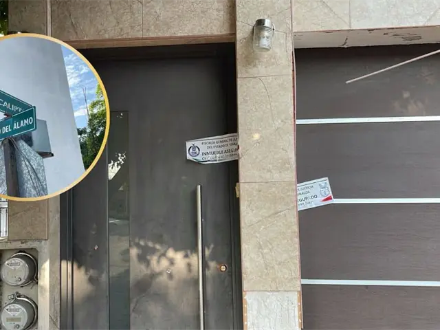 Después de culminar las labores de investigación, agentes de la Fiscalía General del Estado (FGE) colocaron sellos con la leyenda "Inmueble Asegurado", para incautar la vivienda tras los hechos de alto impacto que se registraron la noche del martes 7 de octubre.
