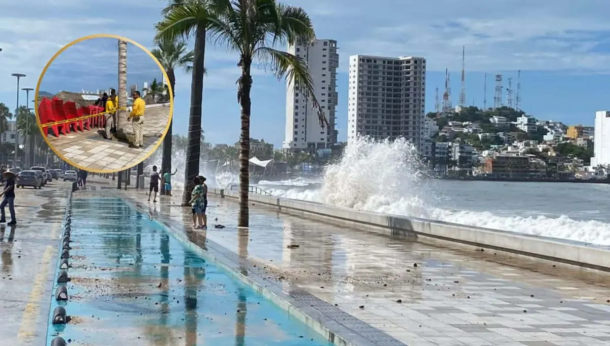 Elementos de Protección Civil realizaron un recorrido por la zona y emitieron un llamado a la población para retirarse de la zona del Malecón, como medida preventiva y de seguridad, pues la fuerza del mar representa un riesgo considerable para peatones y ciclistas que transitan por esta importante vialidad turística.