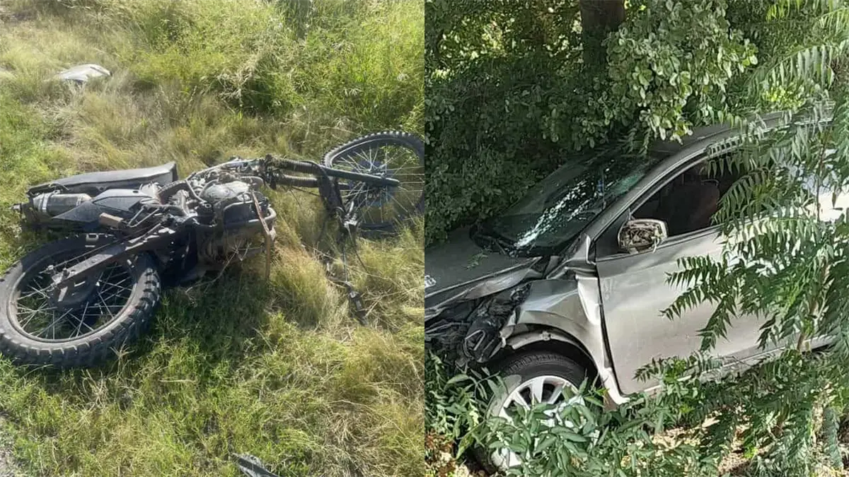 En ese instante, la motocicleta impactó contra el automóvil, provocando que otros dos vehículos también se involucraran en el choque: un vehículo de la marca Nissan, línea Sentra, de color dorado que venía en sentido contrario y un tráiler de color blanco, de una empresa de paquetería que circulaba procedente de Guamúchil.