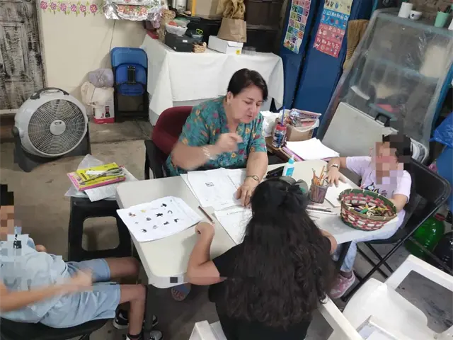 "Ponía una mesita aquí afuera de mi casa y como en ese entonces eran cinco chiquitos, pues había que hacer tareas con ellos, entonces empecé con los míos y ya luego me empezaron a preguntar las personas que si podía ayudarles también a los suyos" relata.