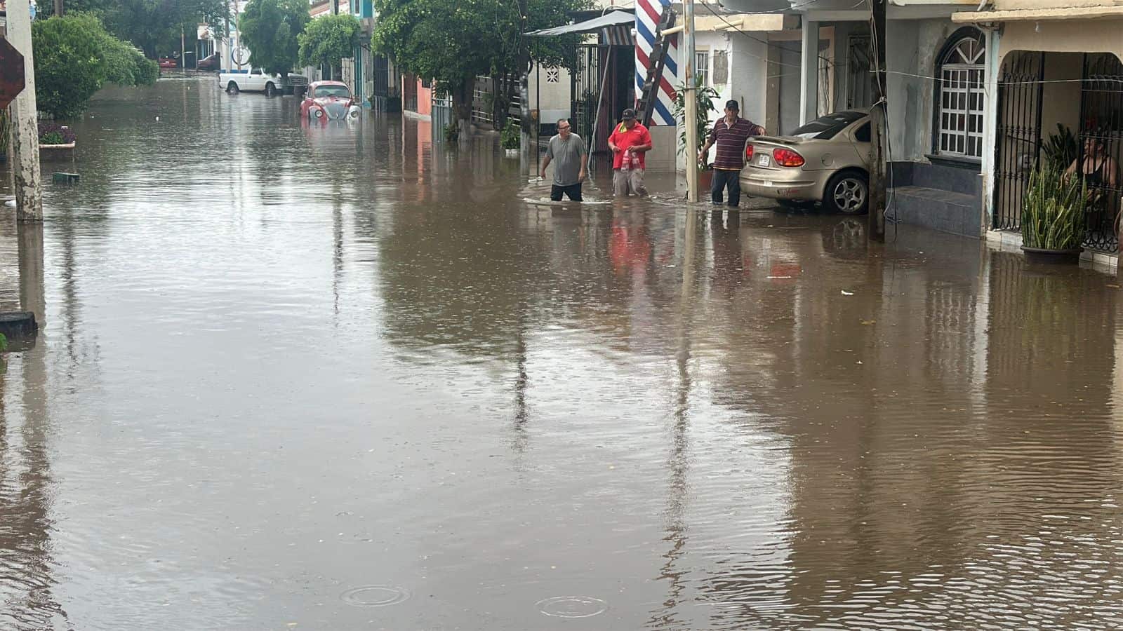 Con el agua a las rodillas están en Las Arboledas en Los Mochis