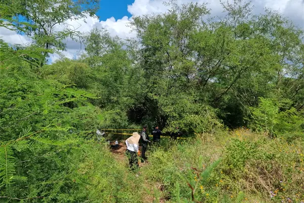 La víctima, quien se encuentra sin identificar, estaba entre la maleza y a simple vista se podía apreciar que vestía una playera azul marino con rojo, un pantalón de mezclilla azul y calzaba tenis negros.