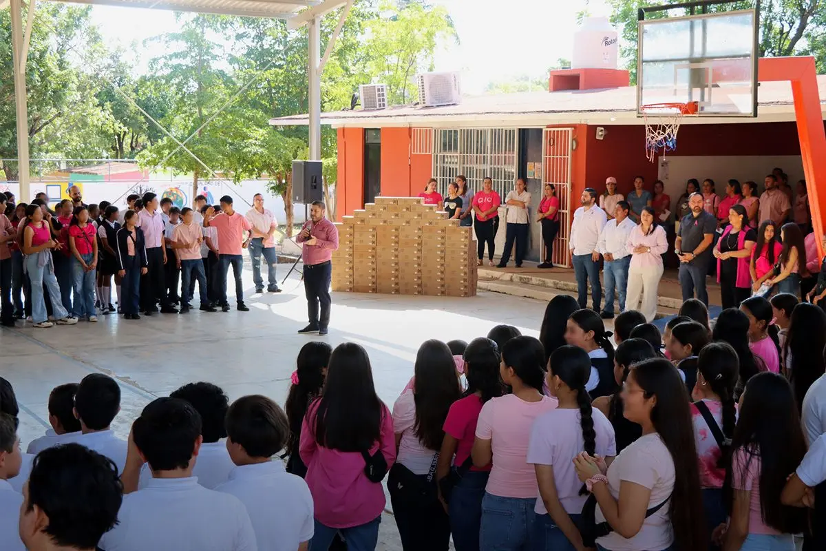 "De aquí a diciembre vamos a atender la renovación de muebles de dos grupos de primer año. Pasando enero (2026) atendemos los otros dos grupos; vamos a equipar las cuatro aulas de primer año con muebles nuevos para nuestros alumnos que van llegando a la Escuela Secundaria Abelardo Medina", se comprometió José Paz López Elenes.