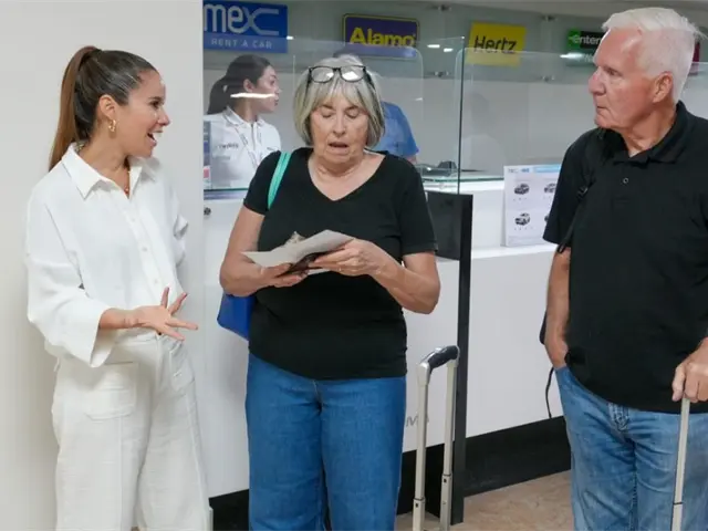 Mireya Sosa Osuna, secretaria de Turismo de Sinaloa, acompañada por Eduardo Galindo, administrador de OMA Mazatlán, le dio la bienvenida a los pasajeros del primer vuelo de la temporada, augurando un exitoso periodo invernal.