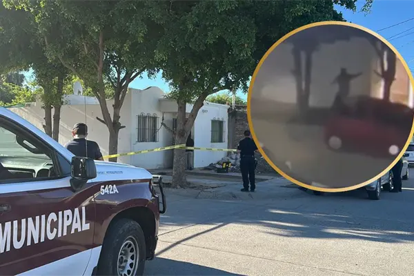 Un video que circula en redes sociales muestra el momento preciso en el que el hombre armado dispara en repetidas ocasiones contra la fachada de la vivienda del fraccionamiento Los Naranjos, al oriente de la ciudad de Los Mochis.