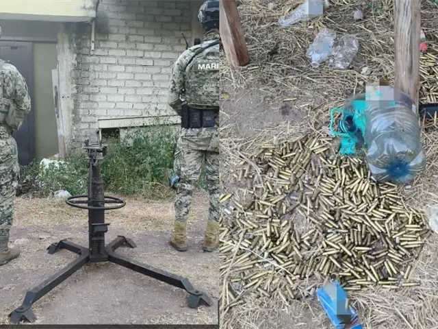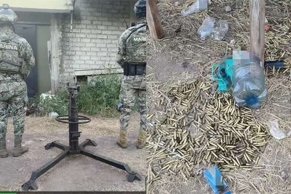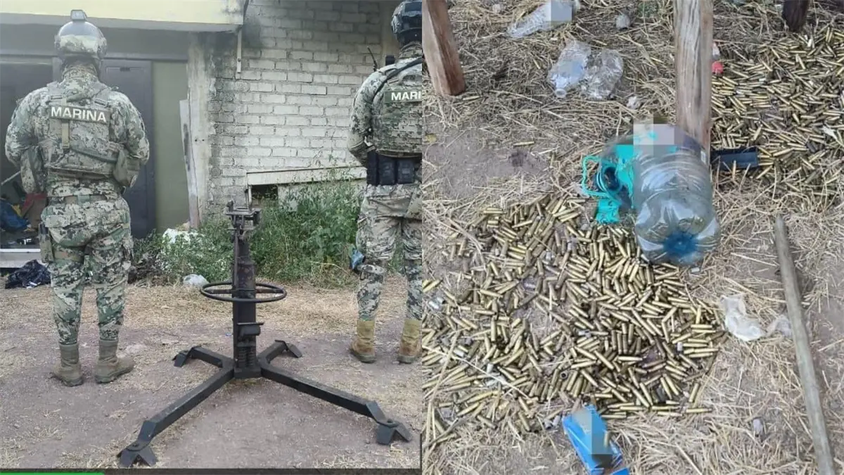 Además, en la inspección del lugar se localizó aditamento para ametralladora y aproximadamente 5 mil casquillos percutidos de diferentes calibres.