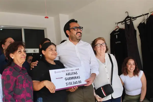 Juan de Dios Gámez Mendívil dio a conocer que el apoyo consta de un cheque de 155,260 pesos, el cual recibió el colectivo "Abejitas Guerreras".