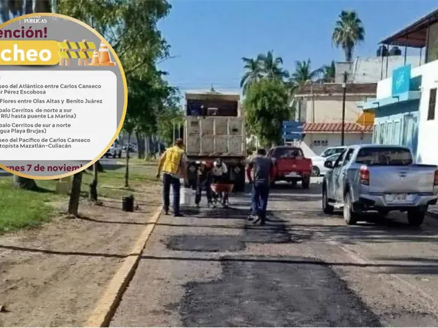 El programa municipal "MazBachetón" continúa trabajando en la ciudad, este viernes con labores de rehabilitación de pavimentos en cinco puntos de Mazatlán. Estas acciones, buscan mejorar las condiciones de las vialidades y garantizar mayor seguridad para automovilistas y peatones.