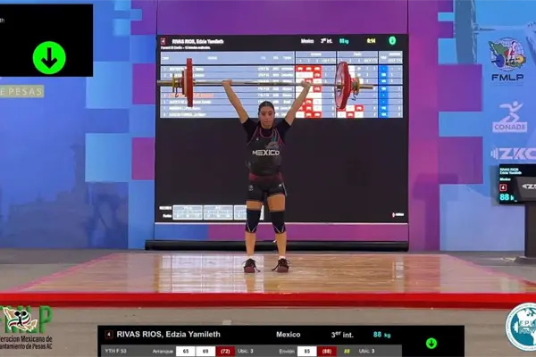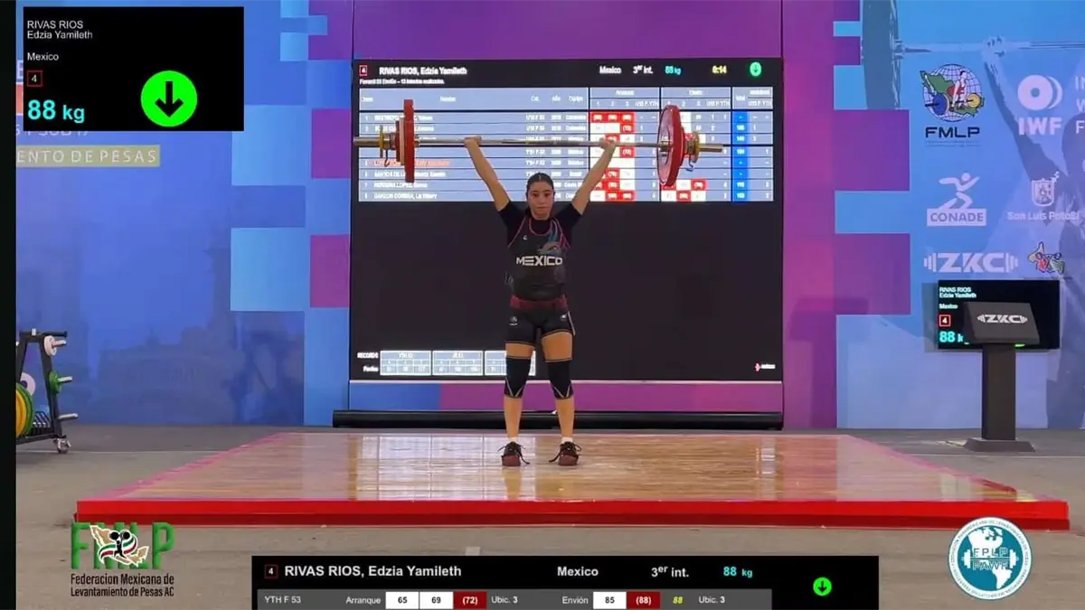 Edzia Yamileth, pupila de Jorge Luis Huie Camacho e Iriana Rivas, consiguió levantamientos de 69kg en arranque, 88kg en envión y un total de 157kg en la división de 53 kilogramos.
