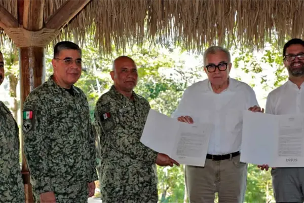 Luego de la celebración de la Mesa de Seguridad que tuvo lugar en las instalaciones militares ubicadas en la cabecera municipal de Badiraguato, el gobernador Rubén Rocha Moya entregó al comandante de la Tercera Región Militar, general de División, Guillermo Briseño Lobera, el título de propiedad del terreno donde se ubica este cuartel.