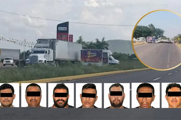 Durante los hechos violentos, elementos de la Guardia Nacional detuvieron a las 7 personas a bordo de un tractocamión, asegurandoles 5 armas de fuego, un lanzagranadas, 41 cargadores, 714 cartuchos de diferentes calibres, 3 chalecos tácticos y 4 teléfonos celulares.