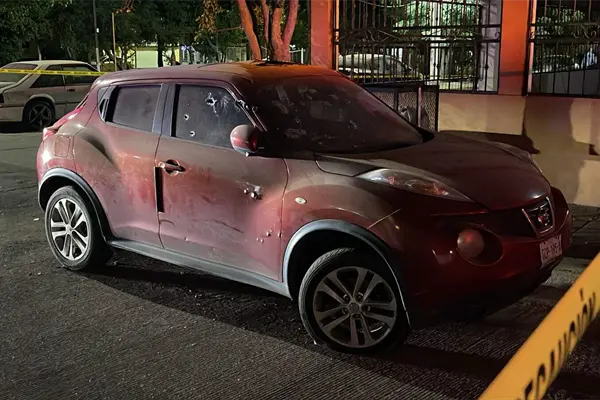 Elementos de la Secretaría de Seguridad y Protección Ciudadana acudieron al lugar para atender el reporte y al llegar encontraron una camioneta Nissan Kicks tinto con decenas de impactos de bala en los cristales y la carrocería.