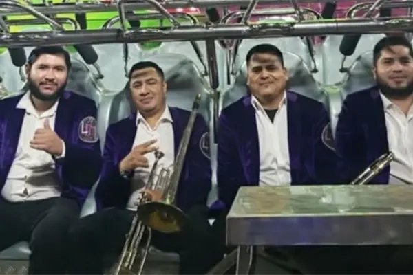 Banda sinaloense ofrece concierto arriba de un juego mecánico en una feria | VIDEO