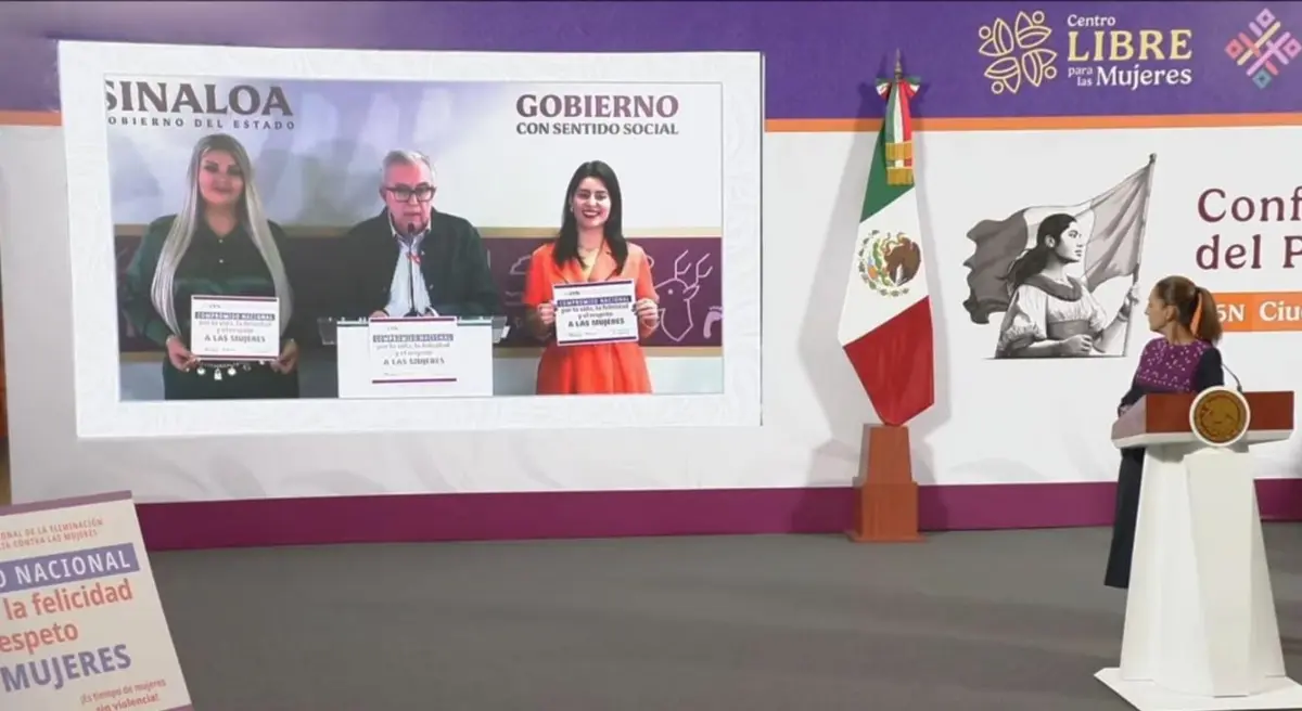 Rocha Moya participa en la Mañanera de Sheinbaum por el Día de la Eliminación de la Violencia contra la Mujer