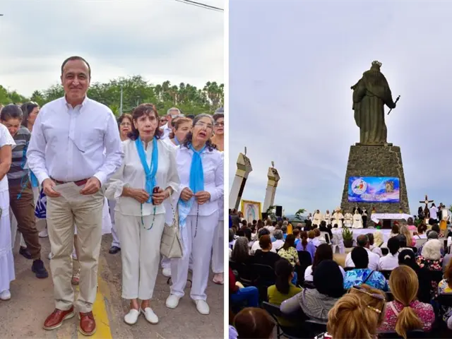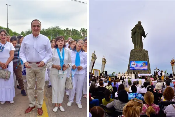 El alcalde de Ahome, Antonio Menéndez De Llano Bermúdez, se sumó este lunes a la comunidad mariana durante la misa por el Jubileo Mariano, celebrada al pie de la imagen de la Virgen del Valle, en el emblemático Cerro de la Memoria.