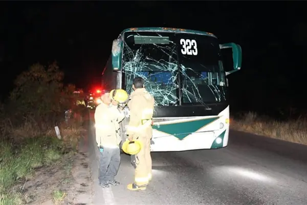 De acuerdo con los reportes de las autoridades, el caballo irrumpió de manera sorpresiva en el carril del autobús, ocasionando que la unidad de pasajeros se impactará de frente.